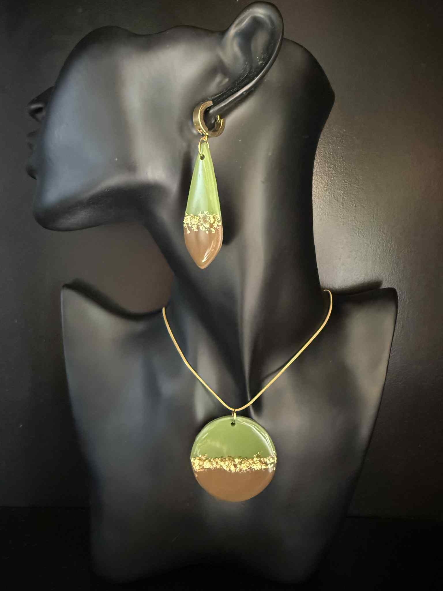 Long Green & Brown Jewellery Set